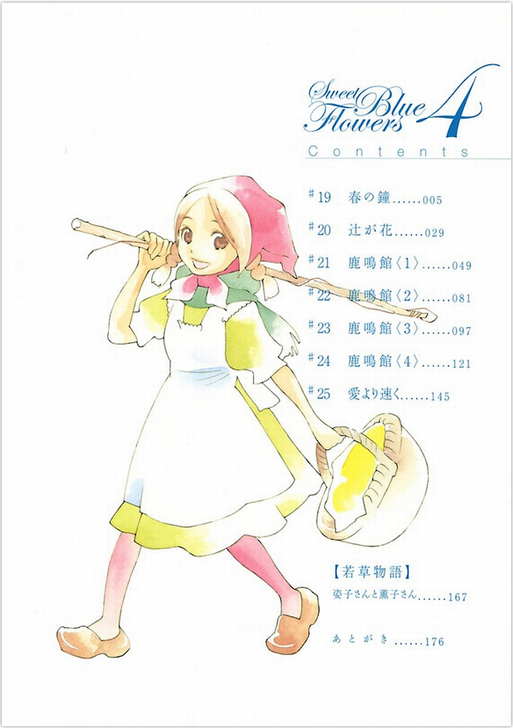 最後、アイキャッチとかに使わせてもらうために記事内に1つは貼りたい画像ですけど、ちょうどファンアートで何かいいのがないかと思いましたが、よく考えたらそれも勝手に貼るわけにはいかないでしょうし、今回もまた青い花の無料お試し読み公開範囲にある巻頭カバーから使わせていただくといたしましょう。