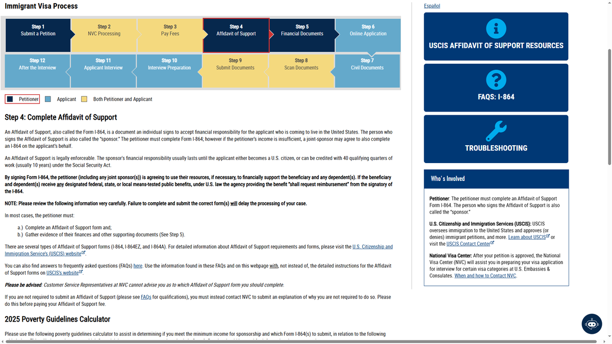 - I-864フォームとも呼ばれ、アメリカに居住することになる申請者の経済的責任を引き受けるために、個人が署名する書類